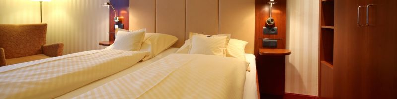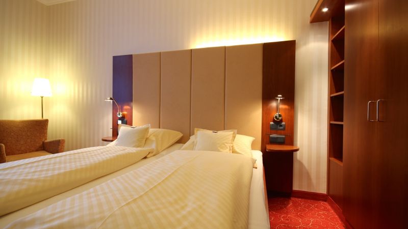 Die liebevoll gestalteten Doppelzimmer, mit warmen  Tönen und Kirschholzmöbeln laden zum verweilen ein. Die Zimmer sind ausgestattet mit Doppelbetten, Kleiderschrank, Garderobe, Spiegel, Flachbildschirm, Radio, Bad mit Dusche/WC und Telefon.