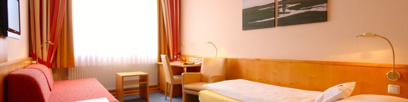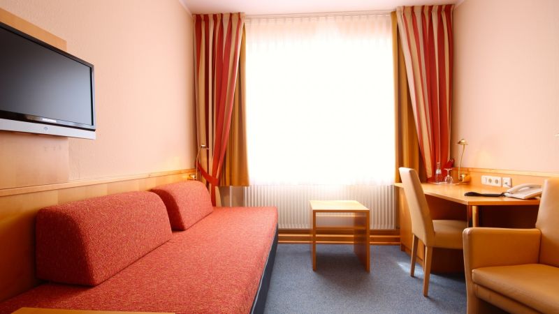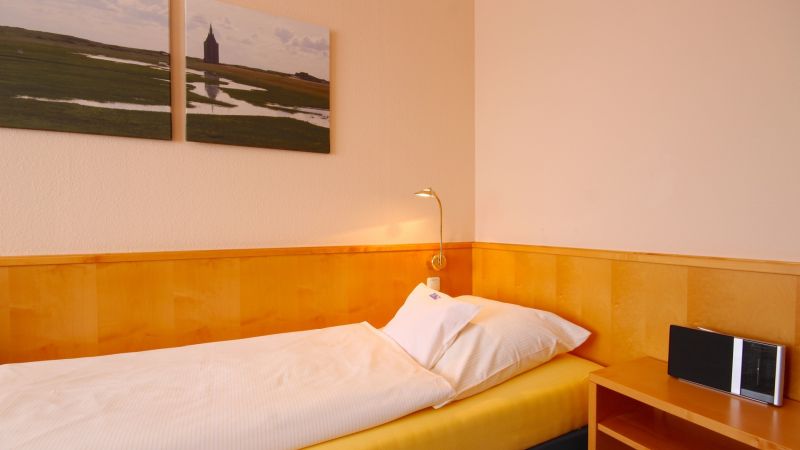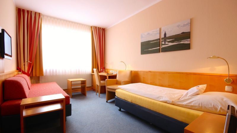 Die Einzelzimmer im Seehotel mit hellen Hölzern, ausgestattet mit Bett, Sofa, Flachbildfernseher, Bad mit Dusche/WC und Telefon, laden zum Verweilen.